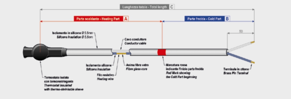 Przewód grzewczy z termostatem, kabel grzejny do pomp ciepła i klimatyzatorów, tac ociekowych. Długość 1 metr części grzewczej oraz 1 metr części zimnej zasilającej.