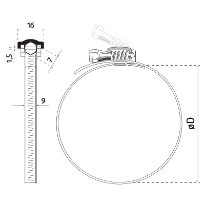 Metalowe opaski zaciskowe CM wykonane są z taśmy ze stali nierdzewnej o szerokości 9 mm. Posiadają odpowiednio ukształtowane krawędzie, aby zapobiec uszkodzeniu przewodów podczas zakładania. Mogą być stosowane do wszystkich typów przewodów elastycznych. Opaska zaciskowa jest montowana za pomocą specjalnego, szybko otwierającego się i szybko zamykającego się zamka CMC.