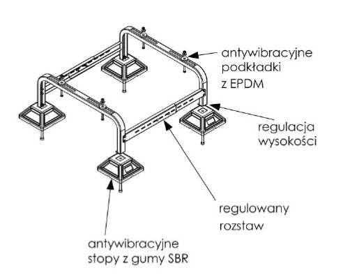 | Typ stóp | 4x Antywibracyjne SBR (200x200 mm) |