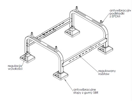 Maksymalna redukcja hałasu: Dzięki stopom z recyklingowej gumy SBR oraz specjalnym podkładkom EPDM, podstawa skutecznie tłumi drgania, dbając o Twój komfort i żywotność urządzenia.