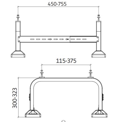 Pełna regulacja: Płynna regulacja szerokości (450–755 mm) oraz wysokości (302–323 mm) pozwala na idealne dopasowanie do większości standardowych jednostek zewnętrznych.