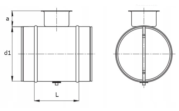 Przyłącze przepustnicy jest w formie nyplowej, co zapewnia łatwe i solidne połączenie z innymi elementami systemu wentylacyjnego.