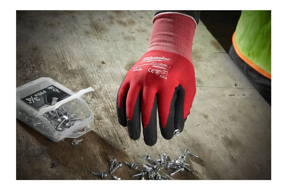 - Elastyczny materiał idealnie dopasowuje się do dłoni, zapewniając wysoką precyzję przy operowaniu drobnymi przedmiotami, np. nakrętkami, śrubami, itp.