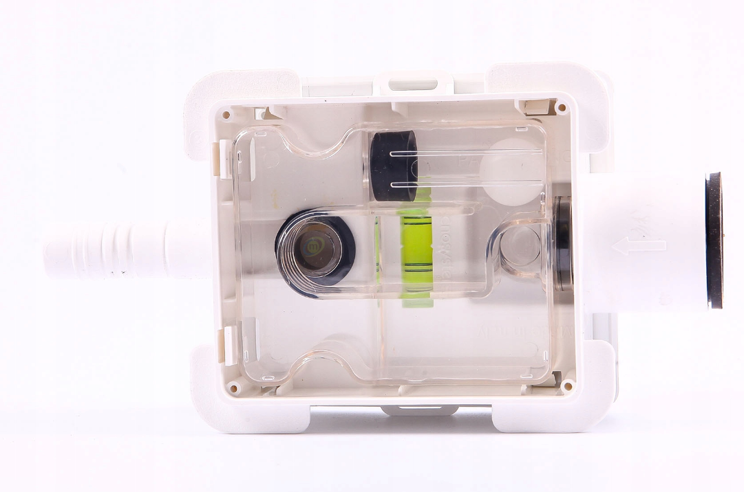 Syfon stanowi efektywne rozwiązanie problemów związanych z odprowadzaniem skroplin do kanalizacji. Dzięki zastosowaniu kulki, powietrze jest skutecznie blokowane, co eliminuje nieprzyjemne zapachy nawet przy dużych podciśnieniach. Wbudowana poziomica zapewnia poprawny montaż, a demontowalna i przezroczysta kaseta z syfonem ułatwia jego czyszczenie i kontrolę. Specjalna zaślepka, która jest montowana na równi z niewykończoną ścianą, zapewnia ochronę syfonu podczas tynkowania/gipsowania i umożliwia estetyczny montaż pokrywy wykończeniowej.