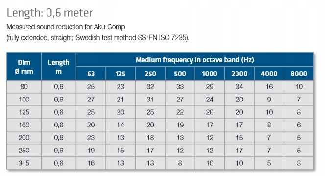 Tłumik elastyczny AKUSTIK, AKU-COMP o średnicy 160 mm i długości 0,6 metra