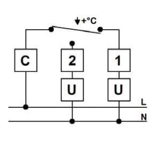 | Układ styków: | SPDT - styk przełączny (C-1 grzanie lub C-2 chłodzenie) |
