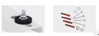 W komplecie dostarczamy następujące akcesoria (poziomnica, nakrętki dystansowe, kołki rozporowe, podkładki gumowe oraz śruby do przykręcenia jednostki zewnętrznej klimatyzatora)