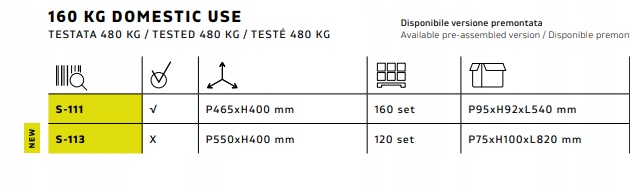 Maksymalne obciążenie 160 kg. (Testowany dla obciążenia 480 kg)