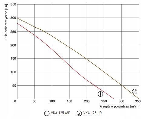 Charakterystyka przepływu wentylatora typu VKA 125 LD