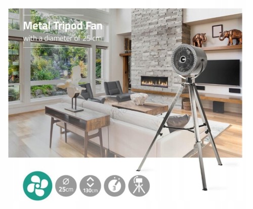 Zapraszamy do zakupu wyjątkowego wentylatora pokojowego na trójnogu FNTR20CMT10 marki Nedis®! Ten elegancki model posiada moc 45W i oferuje trzy różne prędkości, umożliwiając dostosowanie przepływu powietrza do własnych preferencji.